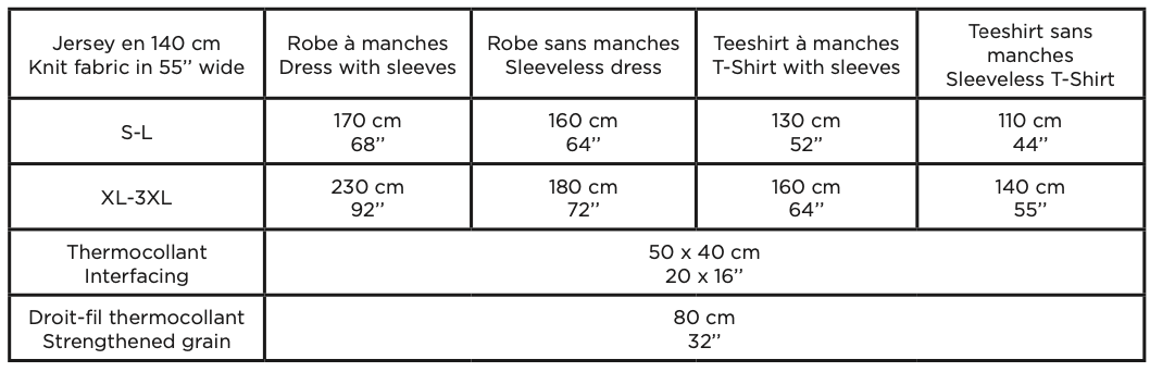 Pour confectionner ce modèle, il faut utiliser un jersey. Le poids idéal est 170-250gr/m2.